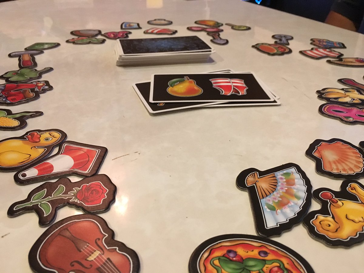 アイテムがいくつか描かれたカードを1枚ずつめくっていき、同じアイテムが2回出てきたら実際のアイテムタイルをいち早く取るゲーム。
