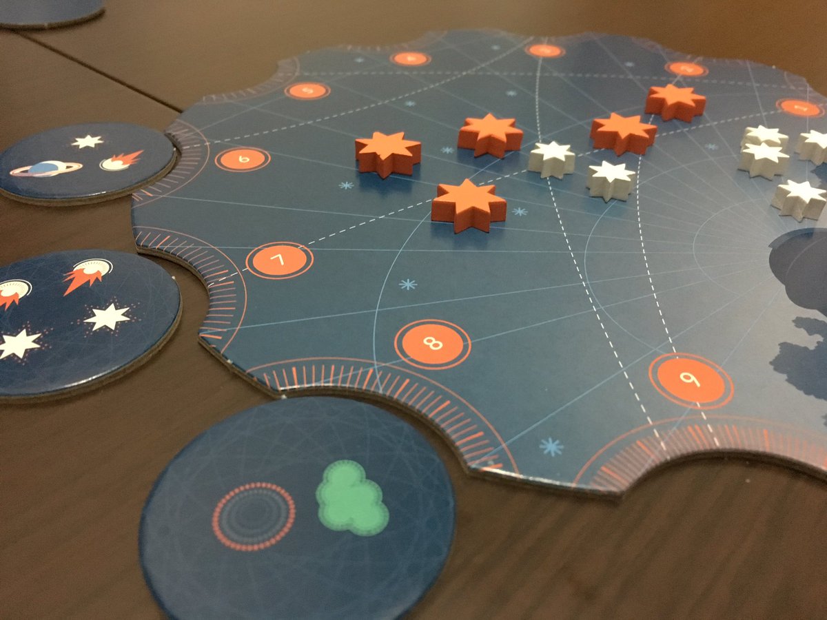星屑トークンを使って、星々の描かれたタイルを競ってセットコレクションする。